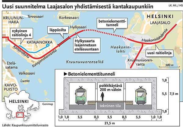 basically a proposed underwater tunnel that will be used for trams aswell as light traffic (i.e. bikes and pedestrians). ive never been to laajasalo (actually id never heard of it).
