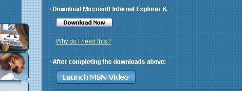 • i’m not using internet explorer 6 as my default browser, so i have to exit firefox and open internet explorer with the same url. it checks to make sure i have flash installed. then i follow the “launch msn video” button