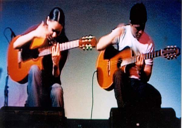 first the bad, or to be more precise ‘unfortunate’. there is a mexican guitar duo called ‘rodrigo y gabriela‘ (pictured above) that have been playing in ireland for about five years. i first saw them when they supported damien rice about two years ago. they are fantastic, the usual fast spanish style guitar playing mixed in with metal and techno elements (everything done by guitar). live they are mesmerising and hypnotic (when i saw them live, everyone was in amazement at what they were doing), so when i was back home last week they happened to be on an irish telly show called “other voices“. i rushed around to find a blank video and i recorded their performace (i got the last 20min or so). so tonight i went to watch it only to find that it was recorded over by the top 10 british comedies. nooooooooooo!. ah well. rodrigo y gabriela play some gigs in ireland and england soon, so check them out if you can.