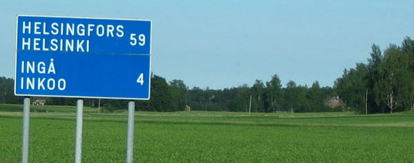 1. coming back into helsinki, driving through one of the swedish speaking areas, hence the swedish name on top