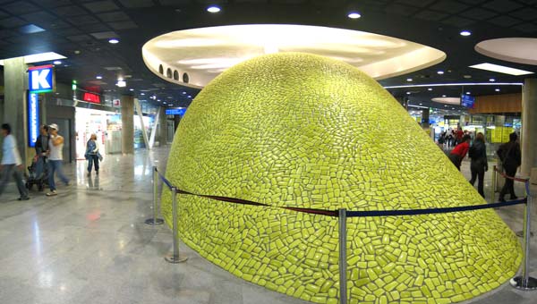 the new main escalator down to the metro station at the new kamppi bus/metro station in helsinki city centre that was opened a week or two back. its cordoned off to stop little kids/drunks/teenagers from trying to climb it.