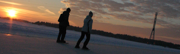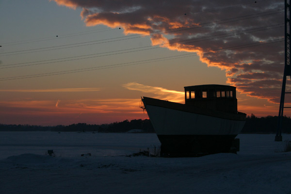 i went back to taivallahti today – walked around and stared at the amazing sunset. i walked across the frozen bay and saw all these people off in the distance skating. there is 10cm or so of snow on the ice – but there is a huge skating circuit on the ice – the city must have cleared away the ice from it to form the circuit. people skiing by. i took almost a hundred pictures of the sunset and the people going by – a beautiful sight. then just as i was walking home (and before i took the above pic) i realised i had the camera iso set to 1600 – so all the pictures were grainy. boo amateurs! i did get a few dozen at the end at proper iso settings thankfully.