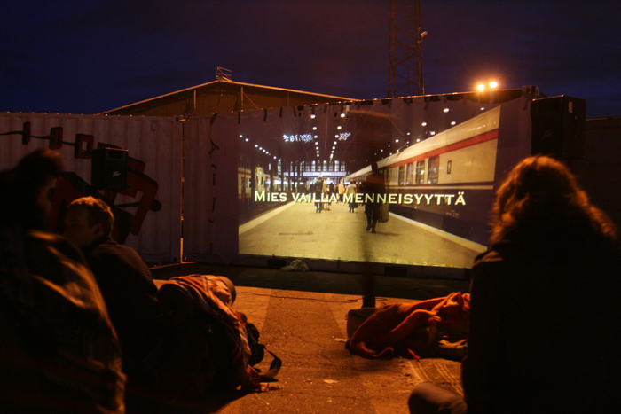 bermuda helsinki hosted an outdoor cinema in konttiaukio in kalasatama last weekend. i managed to watch (and enjoy) kaurismäki’s “the man without a past” (mies vallila menneisyyttä) without subtitles.